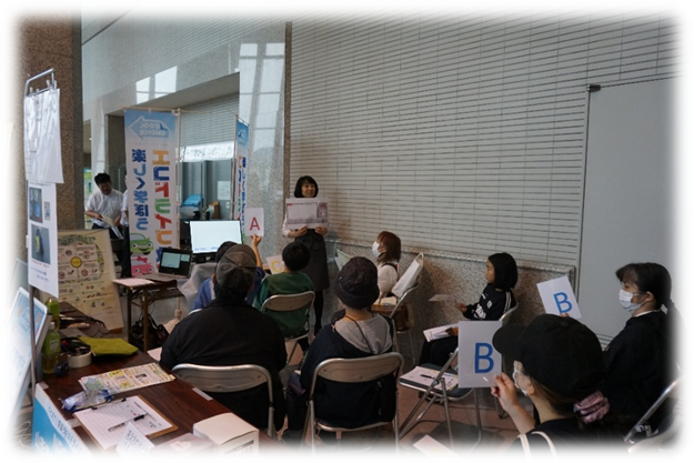 自動車公益センターでは「クイズで!楽しく学ぼうエコドライブ!」とリサイクルを知るゾーンでは「リサイクル事業の紹介、リサイクル製品の展示」を行いました。
