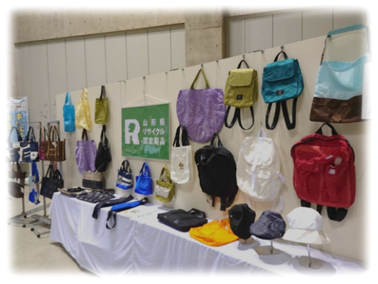 エアバックなどで作ったエコな商品展示も